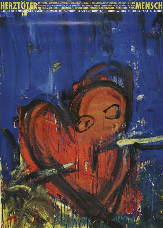 Herztöter Mensch / Siegfried Anzinger. Poster von 1987.